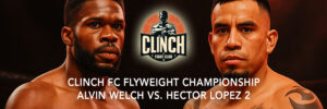 Alvin Welch (5-1) will defend his Flyweight belt against Hector Lopez (4-2) in a fight fans have been waiting for: a rematch following their first meeting. Welch triumphed in the first meeting, earning a split decision over Yakima’s Lopez at Clinch FC VIII on July 20. 2024.